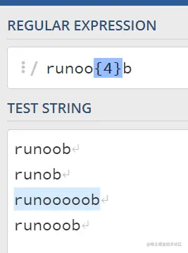 比如希望{}前面的字符出现的次数是4次,就用{4}表示