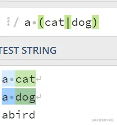 6.“或” 通配符 如果想找 a dog和a cat就在()里加“|”;这里前面会先区匹配“a”