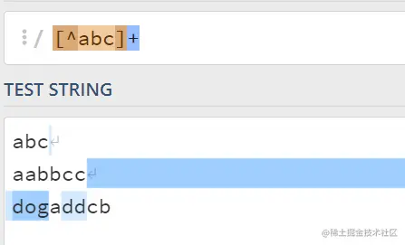 8.如果在 []+ 前边加 ^ ,就表示匹配除了尖号后边列出的【以外】的字符(包括换行符)