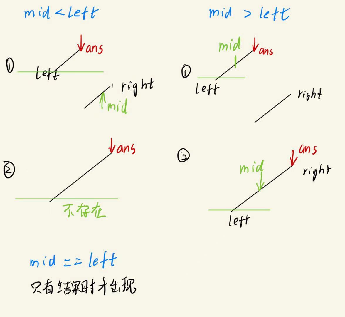 三种情况下,ans与mid的相对情况只有一种