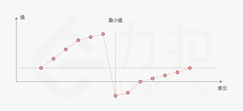 一个不包含重复元素的升序数组在经过旋转之后,可以得到下面可视化的折线图: