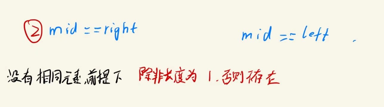 mid==left是可能的。 长度还有可能为2mid=(left+right)/2=left+(right-left)/2,如果长度大于2,mid也一定不等于left